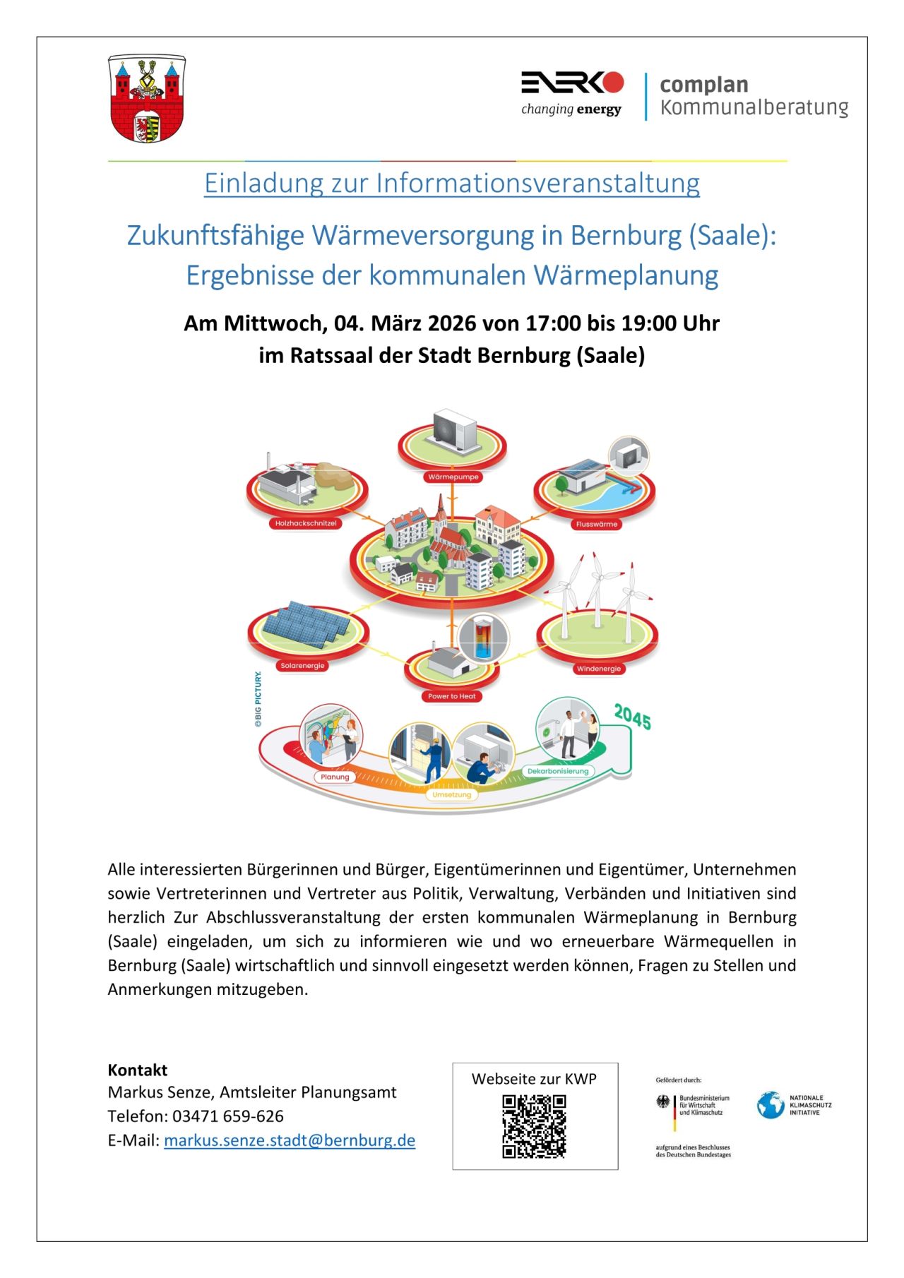 Die Stadt Bernburg (Saale) freut sich auf eine rege Teilnahme und den gemeinsamen Dialog zur zukünftigen Wärmeversorgung.